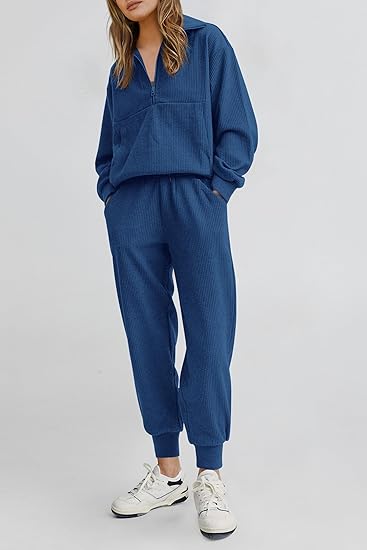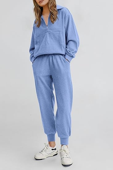 Experience the perfect blend of comfort and style with our comfortable fit two-piece set. The set consists of a crew neck top and matching trousers, both made from soft, breathable material to keep you looking stylish and relaxed.