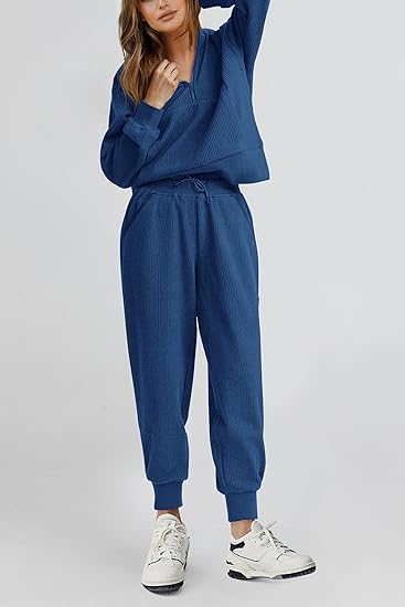 NEW 🔥 Women's Cotton 2-Piece Oversized Drawstring Sweatshirt Set
